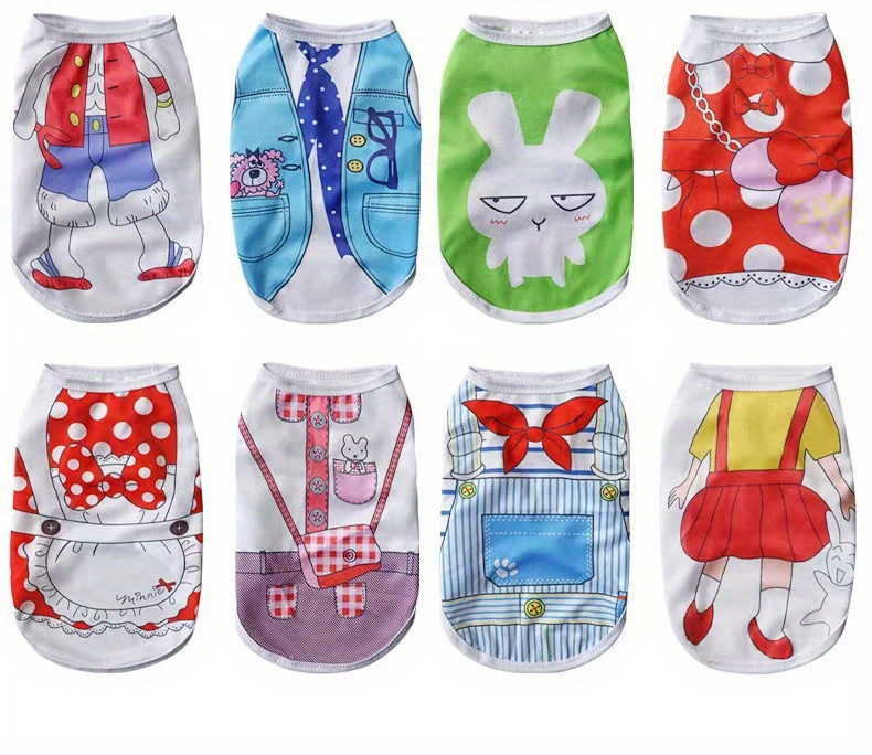 7pcs/ 8pcs/ 16PCSDog Vest Set, Cute Puppy And Cat Vest, Cartoon Design Pet Vest T-shirt, Spring/Summer Clothes for Small And Extra-Small Dogs, Pet Apparel Suitable for Yorkshire Terriers, Maltese, Bichons, Pomeranians And Chi